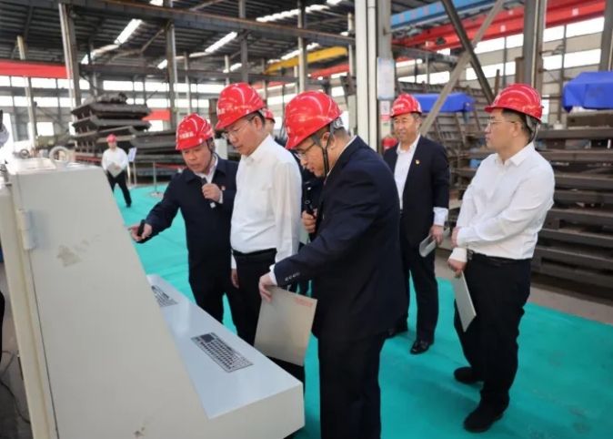 馮能斌副市長一行聽取了楊明波董事長關于企業發展情況的匯報,深入車間詳細了解了企業自主研發的智能化橋隧襯砌臺車、高鐵900噸液壓大箱梁、液壓掛籃、液壓棧橋等智能化工程特種裝備產品,對企業在細分領域和產業鏈強鏈補鏈中的關鍵重要作用給予充分肯定,鼓勵企業要不斷加大研發投入,推動技術進步和產業升級,推動數字化、智能化、綠色化轉型,實現經濟效益和社會效益的雙贏,以提升核心競爭力和長遠發展潛力。