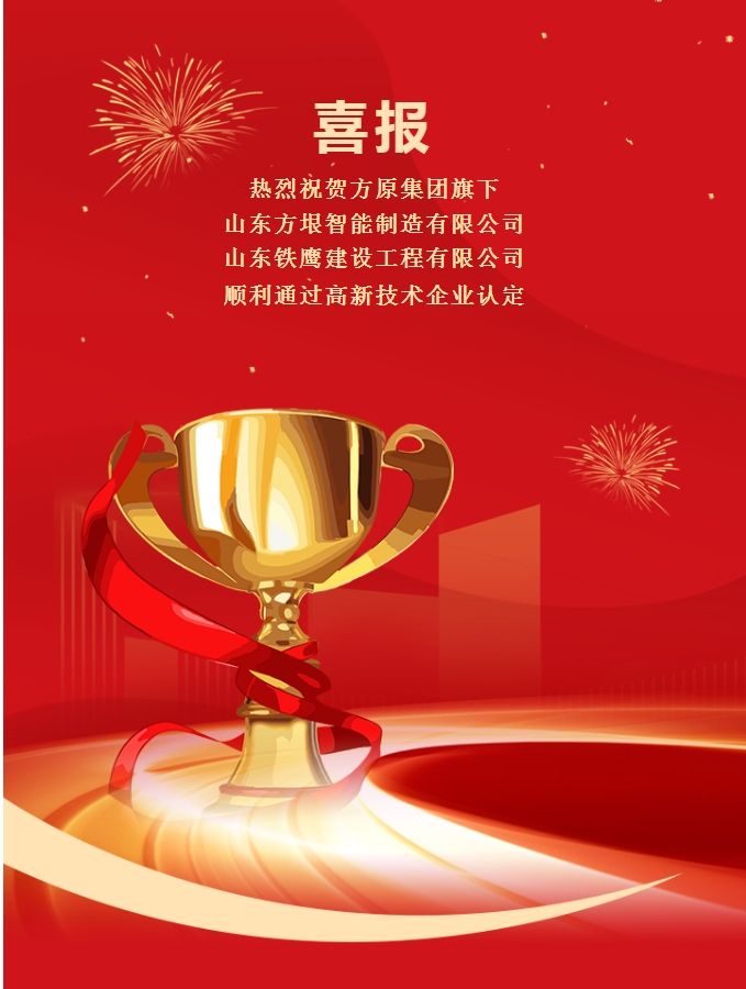熱烈祝賀方原集團旗下山東方垠智能制造有限公司和山東鐵鷹建設工程有限公司順利通過 高 新 技 術 企 業 認定