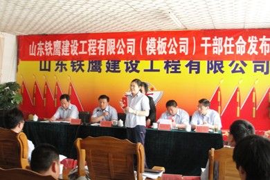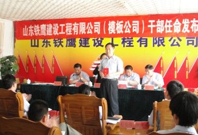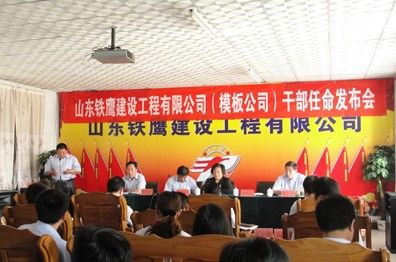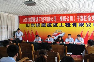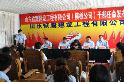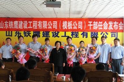 2012年5月2日早9:00,山東鐵鷹建設工程有限公司干部任命發(fā)布會在會議室召開。對榮祥峰、趙福偉、郭慶國、白代柱、宋金萍、張琨等6位同志做出任命發(fā)布,并頒發(fā)證書。公司領導與任命干部親切合影留念。