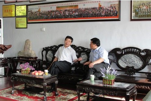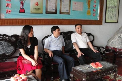 市委統戰部副部長、市工商聯黨組書記高樹順(左)與楊明波總經理(右)親切交談