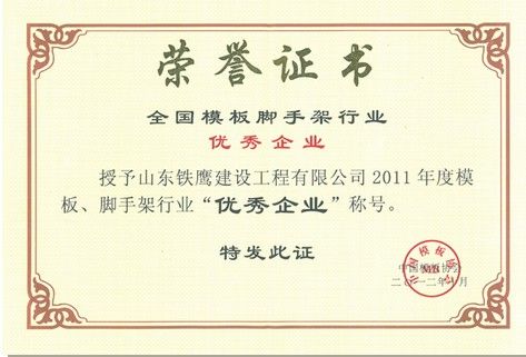公司榮獲模板協會2011年度模板、腳手架行業“優良企業”
